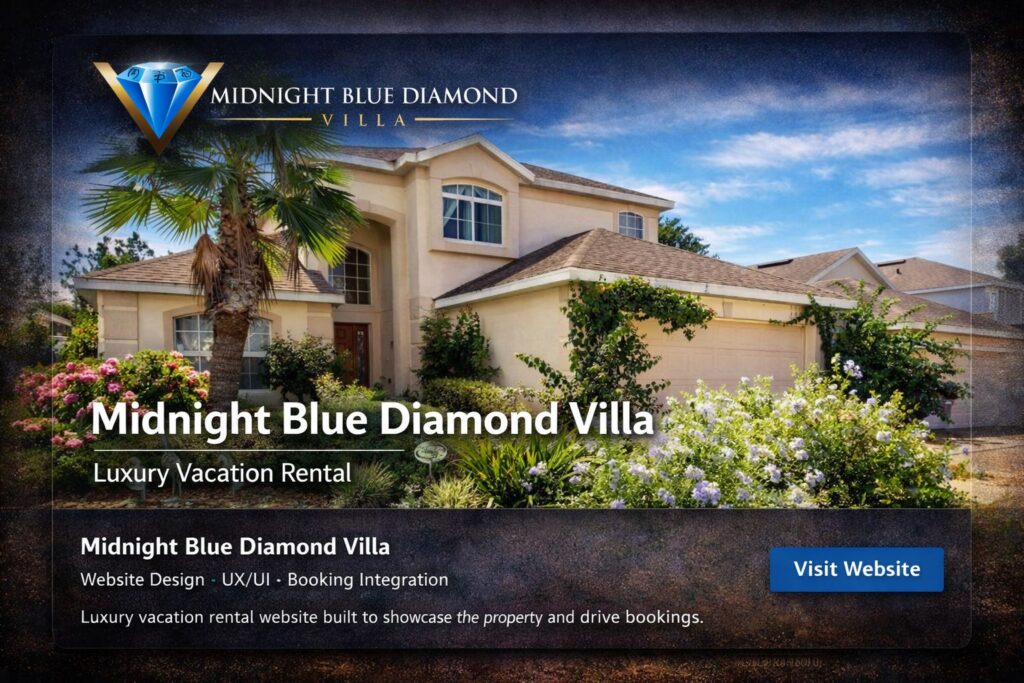 Luxury vacation rental website designed to showcase the property and drive bookings. Focused on visuals, villa details, and a smooth reservation experience.