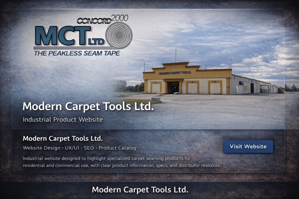 Industrial product website built to sell patented carpet seaming solutions online with clear product breakdowns and distributor-focused content.