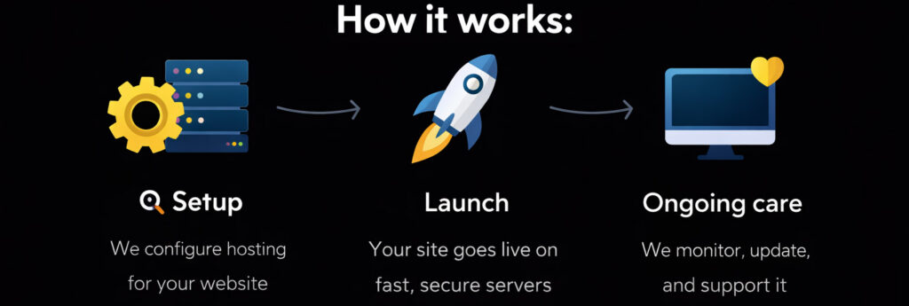 Our web hosting is built for performance, security, and reliability — without the complexity. We handle setup, updates, monitoring, and support so your website stays online, fast, and protected.